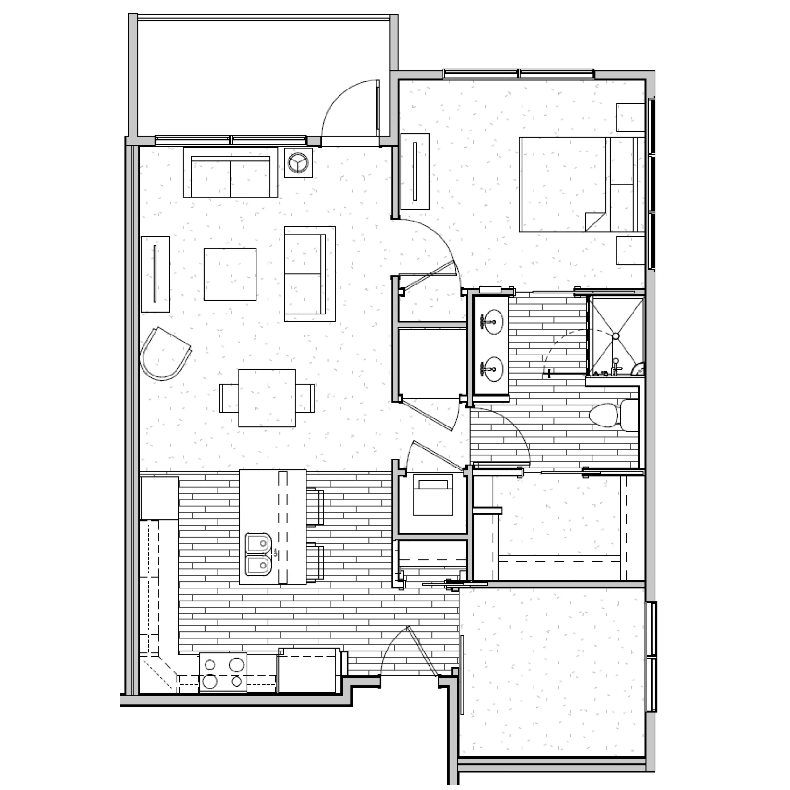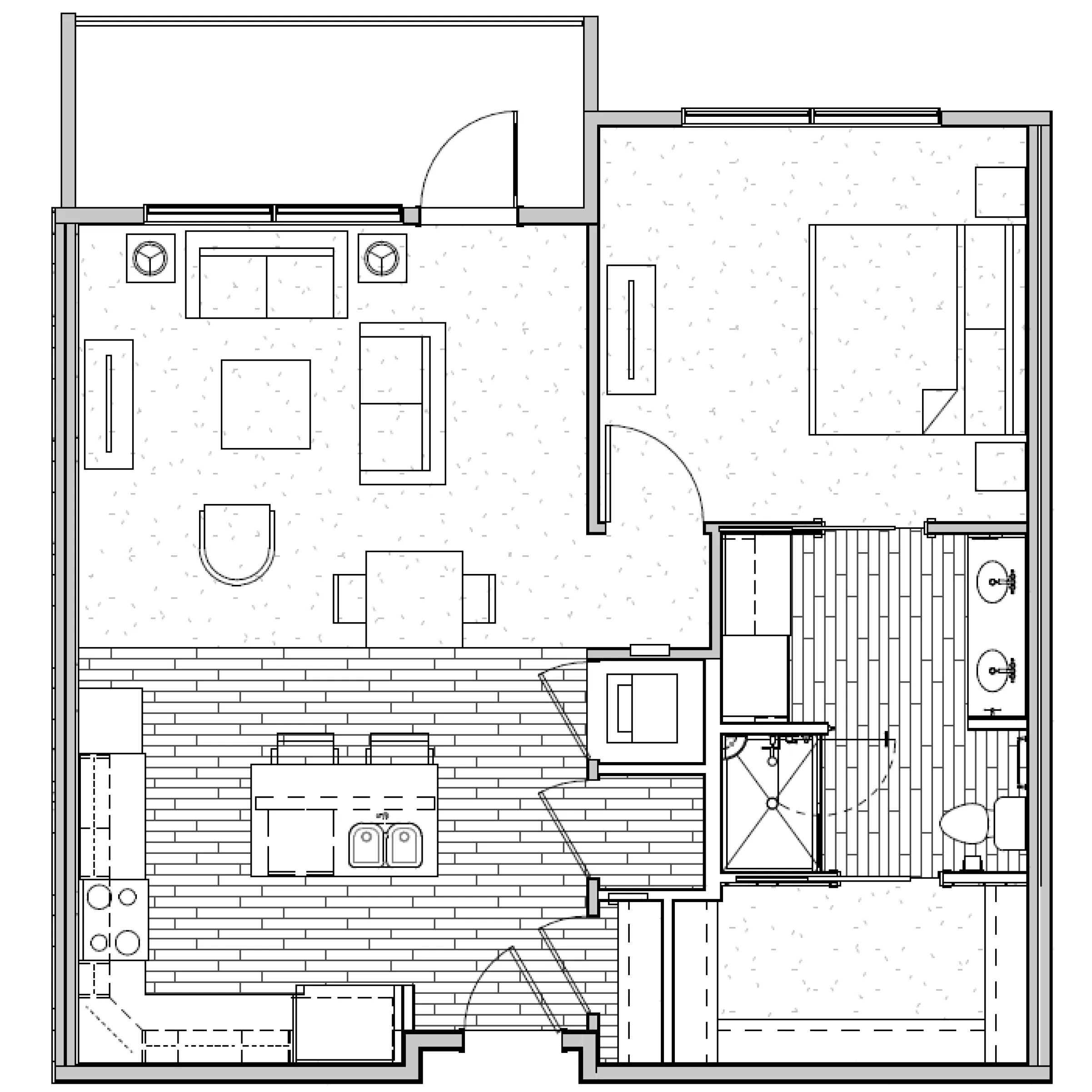The Apartments offer two floor plans: an 845 sq. ft. one-bedroom/one-bath, and a 900 sq. ft. one-bedroom/one-bath with den. Every apartment also includes a washer and dryer.