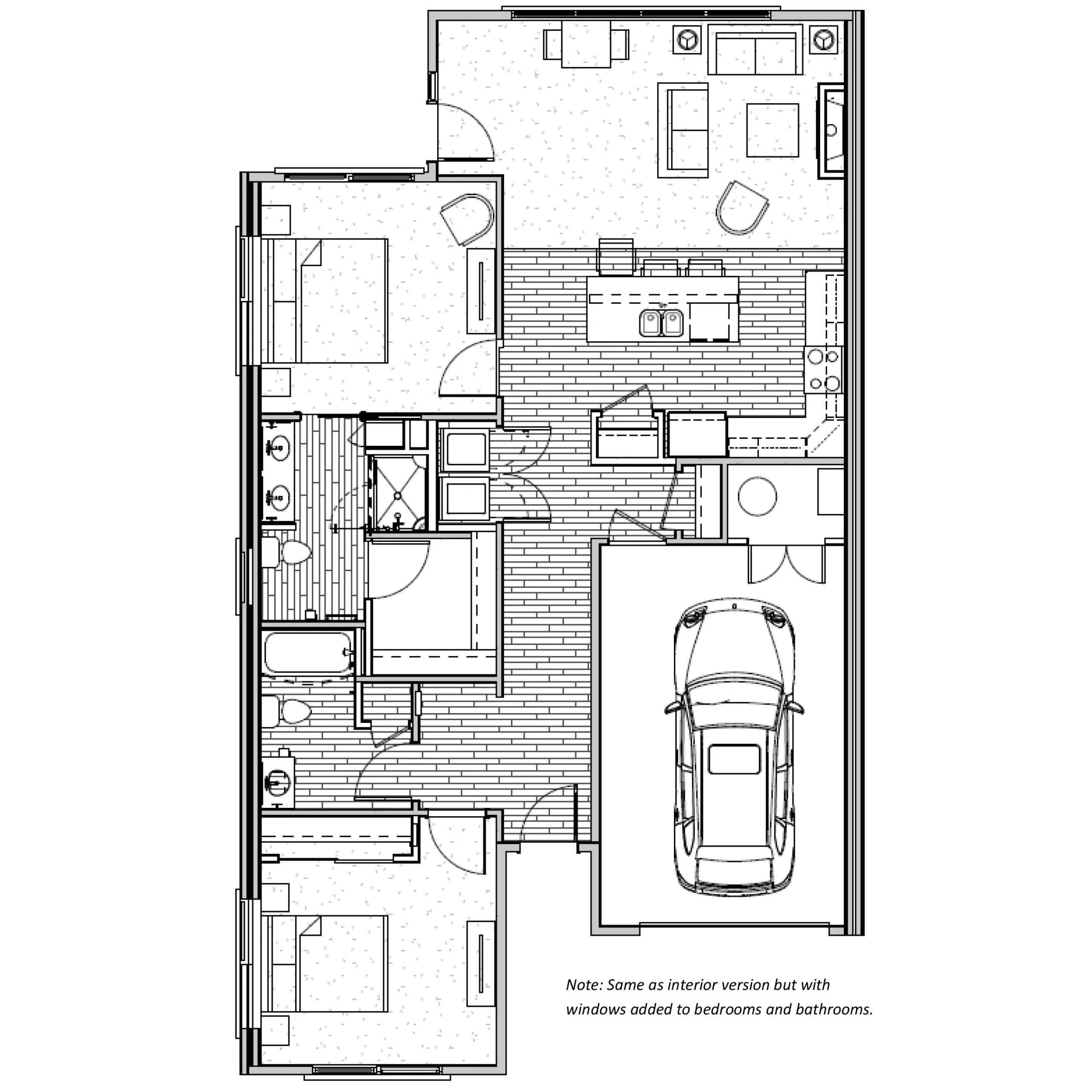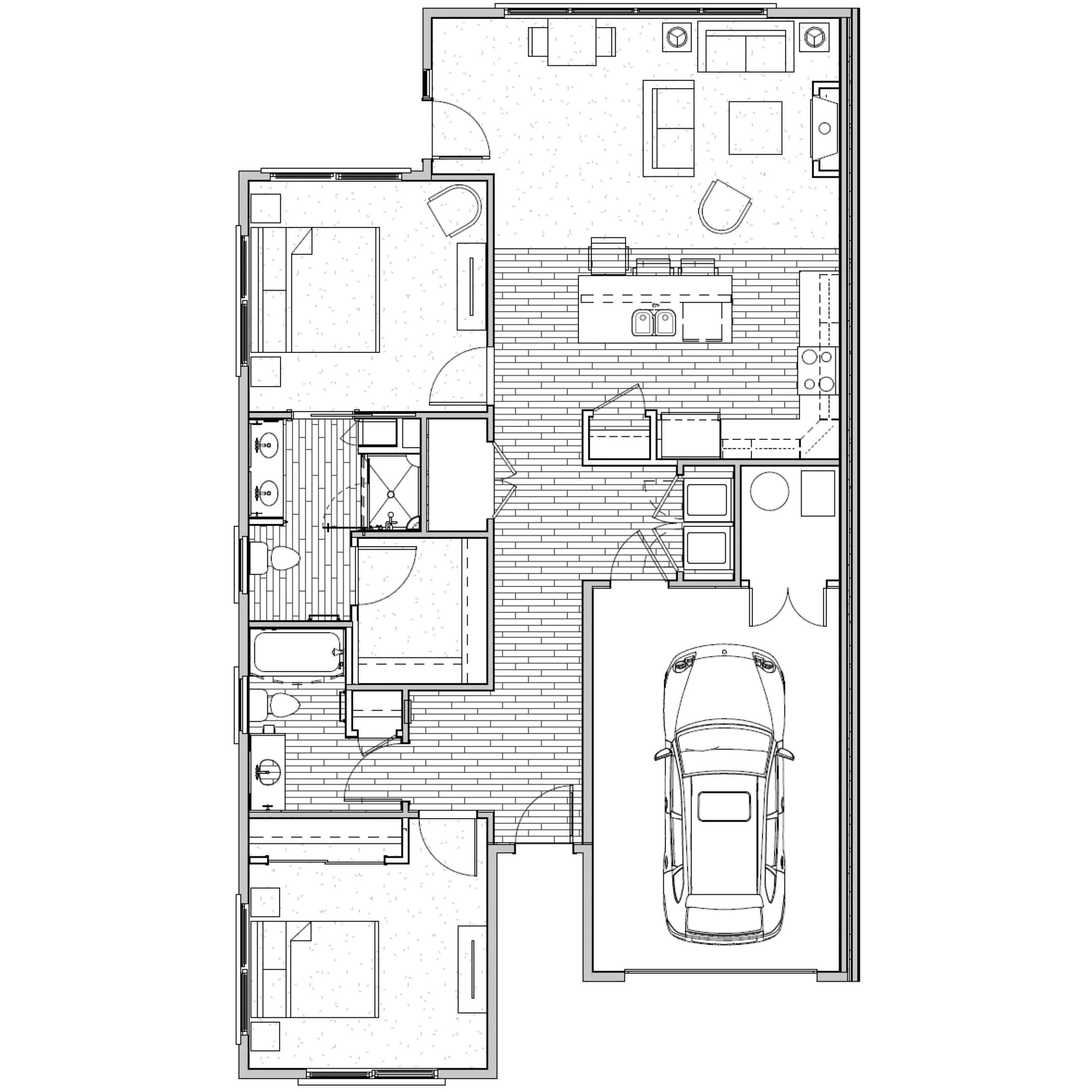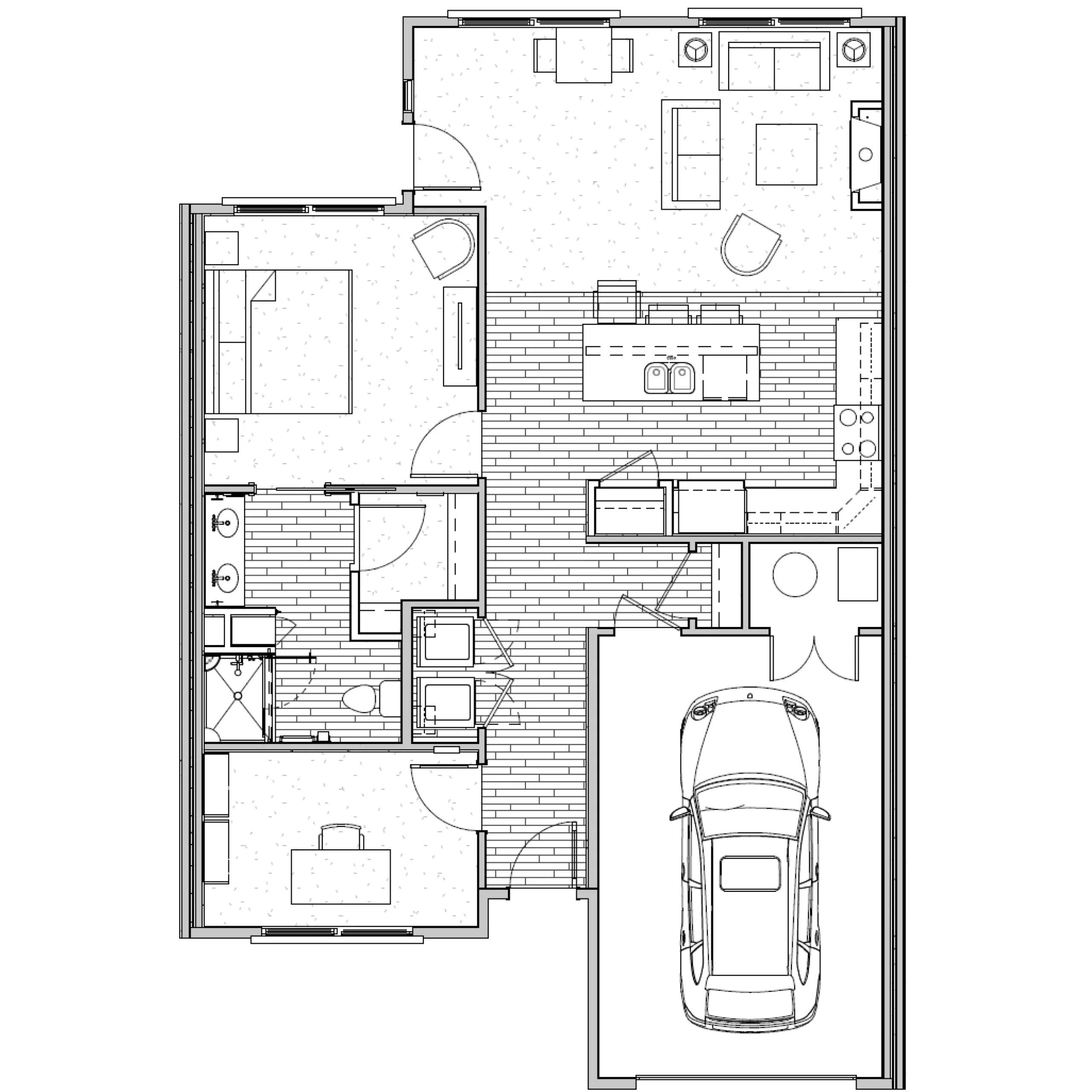 The Garden Homes are available in four different floor plans, including a 1,050-square-foot one-bedroom with den option, and two-bedroom/two-bath options ranging from 1,250 to 1,290 square feet. All Garden Homes include garages and in-unit washers and dryers.